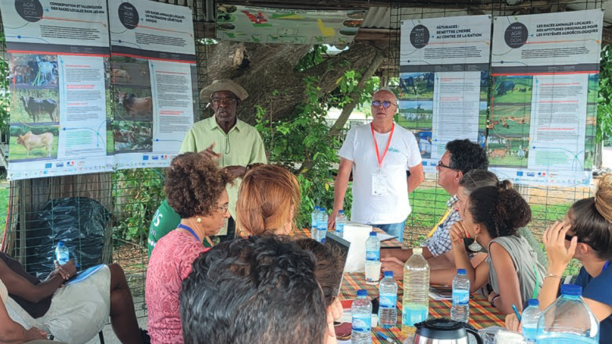 TRANSAGRIDOM - Accentuer la synergie entre territoires et acteurs des réseaux d'innovation et de transfert agricole pour assurer la transition agroécologique dans l'Outre-mer [MCDR] Terminé National Agriculture Environnement Économie FEADER Réseau National Agricultures et Ruralités Publié le 7 octobre 2022 Mis à jour le 8 octobre 2025 Il a contribué à abolir les distances pour mieux partager conseils, outils et bonnes pratiques en faveur de la transition agro-écologique. Le projet TransAgriDom a mobilisé dix-huit acteurs des RITA, les réseaux d’innovation et de transfert agricole, afin d’apporter des réponses concrètes aux nombreux défis rencontrés par les agriculteurs ultramarins. Webinaires, comités de suivi, ateliers et visites de terrain ont rythmé la vie de ce projet de coopération inter-DOM. Atelier sur la génétique animale organisé au domaine de Gardel, une unité expérimentale de l’INRAE en Guadeloupe, le 17 mai 2022 dans le cadre des rencontres TransAgriDom. / Sophie Cluzeau-Moulay / Acta Initié et financé par le Réseau Rural National (prédécesseur du RNAR), l’appel à projet MCDR vise à soutenir des projets collectifs, nationaux ou inter-régionaux en faveur de la ruralité et qui entrent dans le cadre des objectifs de la politique du développement rural européenne et bénéficient pour se faire de co-financement du FEADER. Deux appels à projets se sont succédé entre 2015 et 2022. Ils ont beau vivre à des dizaines de milliers de kilomètres, ils partagent les mêmes objectifs d’autonomie et de développement durable. Qu’ils soient à La Réunion, à Wallis-et-Futuna, à Mayotte ou en Guyane, les agriculteurs et éleveurs ultramarins font en effet face à des contraintes et des défis agronomiques communs : autonomie alimentaire des élevages de ruminants, fertilité des sols, diversification des productions, protection des cultures… Afin de favoriser le transfert de connaissances et de faire évoluer leurs pratiques, TransAgriDom a réuni pendant trois ans une diversité d’acteurs de la recherche, de l’enseignement, de la formation et du développement agricole spécialistes des Outre-mer. Ambition commune affichée : promouvoir des modes de production plus respectueux des hommes et de leur environnement. "La transition agroécologique est plurifactorielle, elle nécessite une approche globale, intégrative et systémique" insiste Frank Enjalric, chercheur au Cirad, co-animateur national des RITA et chef du projet MCDR. Les chercheurs, ingénieurs, techniciens, enseignants, conseillers ou membres de coopératives agricoles impliqués dans le projet avaient tous pour mission d’accélérer les innovations et leur appropriation par les agriculteurs. Leurs travaux ont porté sur des thématiques d’intérêt partagé telles que la gestion des prairies, la santé des cheptels, les systèmes agroforestiers, la caractérisation et la qualité des miels ou l’agritourisme. Au contact du terrain Des rencontres avec des producteurs de canne à sucre, de café ou de bananes certifiées AB, une visite de l’ASSOFWI, association de producteurs de fruits qui expérimente des pratiques alternatives en agriculture biologique (purins, lombricompost, associations de cultures...), des ateliers sur les fourrages ou sur la transformation à la ferme, des démonstrations de l’utilisation de filets contre les mouches des Solanacées… Autant d’actions de terrain qui ont rythmé les rencontres TransAgriDom organisées en Guyane en 2019 puis en Guadeloupe en 2022, "deux rendez-vous qui ont réuni chacun 150 à 200 personnes ravies d’échanger et de construire ensemble", témoigne le chef de projet. Des productions techniques et pédagogiques "Les agriculteurs et éleveurs ultramarins sont en transition, ils veulent produire différemment. Les questions et les idées fusent, constate Frank Enjalric. Nos visites sur leurs exploitations étaient perçues comme une forme de reconnaissance de leurs pratiques et de leurs convictions." Les innovations ou bonnes pratiques identifiées étaient ensuite capitalisées sur COATIS, la plateforme collaborative des RITA, et approfondies lors de webinaires ainsi qu’à l’occasion des rencontres annuelles des RITA organisées au Salon international de l’agriculture à Paris. Ces travaux ont donné lieu à la production de nombreux outils et supports de conseil, de formation et de communication : guide et vidéo pour aider à la mise en place de parcours de volailles arborés, vidéos sur les bonnes pratiques à adopter avec les médicaments vétérinaires et sur la gestion des praires, synthèse sur les systèmes agroforestiers ou encore application sur les plantes de services. "Sans oublier les multiples rencontres et échanges qui ont eu lieu. Des livrables éthérés, difficilement formalisables, mais qui sont autant de transferts de connaissances et de compétences", complète Frank Enjalric. « TransAgriDom a rapproché deux publics : les producteurs et les "consommateurs" de connaissances » De la recherche à l’opérationnel "TransAgriDom a rapproché deux publics : les producteurs et les "consommateurs" de connaissances, estime le chef de projet. Grâce par exemple aux livrets, fiches et protocoles ou aux parcelles de démonstration des instituts techniques, les innovations peuvent être appropriées et rétro alimentées par les utilisateurs finaux : les agriculteurs et les organisations paysannes." Les solutions développées ont aussi vocation à nourrir des programmes de formation initiale ou continue, notamment les enseignements dispensés au sein des lycées agricoles, ainsi que les politiques publiques de développement agricole. Un réseau professionnalisant Qu'est-ce que TransAgriDom vous a apporté au niveau professionnel ? La question était posée le 20 mai 2022 aux participants du séminaire final du projet. Parmi les nombreuses réponses formulées sur des post-it : "De nouve
