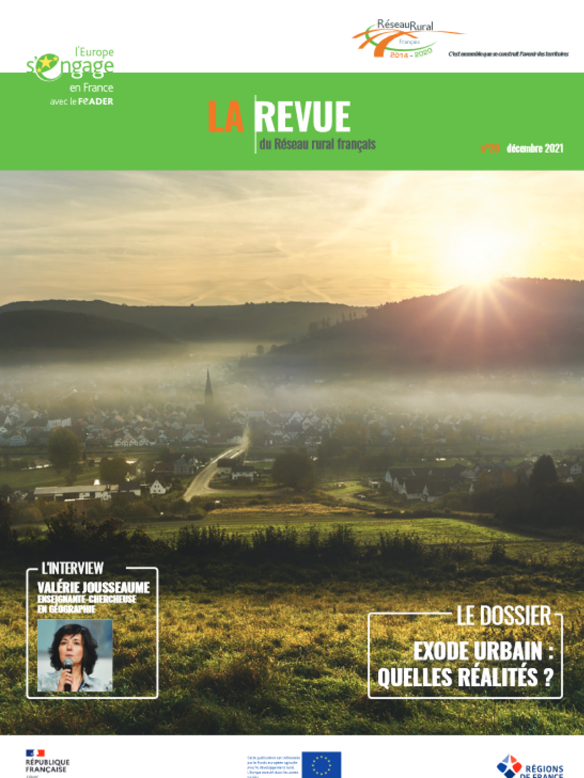 Revues La revue du réseau - décembre 2021 National Coopération, recherche et innovation Territoire et gestion de l’espace FEADER Réseau National Agricultures et Ruralités Réseaux régionaux Publié le 3 décembre 2021 Mis à jour le 3 octobre 2025 Au sommaire de ce numéro, • un dossier spécial : "Exode urbain, quelles réalités ?" • également une interview de Valérie Jousseaume , Enseignante-chercheuse en géographie • retrouvez enfin nos rubriques habituelles avec les actualités consacrées au Partenariat Européen pour l’Innovation, aux Mobilisations collectives pour le développement rural, à LEADER ou encore aux Réseaux ruraux régionaux, ainsi que nos idées lectures pour 2022. Bonne lecture ! L'interview Valérie Jousseaume, enseignante-chercheuse en géographie à l’Université de Nantes, auteur de Plouc Pride, un nouveau récit pour les campagnes. Le dossier - Exode urbain : quelles réalités ? L'exode urbain, tant mis en scène par les médias, est-il une réalité ? Assiste-t-on à une transition rurale durable ? Associé au PUCA, le Réseau rural pose la question et lance une étude nationale sur l'impact de la pandémie de Covid-19 sur les mobilités résidentielles. Présentation et enjeux de ce travail en cours. Actus LEADER ATTRACTIVITÉ DES TERRITOIRES RURAUX : l'exemple du Cantal SLOVÉNIE : la coopération LEADER à l'honneur CONGRÈS DES GAL : regard vers l'avenir Actus PEI AKIS : accélérer le transfert de connaissances et l'innovation GRAND EST : un premier "GO-Tour" sur le chanvre FORMATION : réaliser une vidéo avec un smartphone Initiatives de la mobilisation collective pour le développement rural (MCDR) PORT@IL : des tiers-lieux ruraux pour insuffler une dynamique du vivre ensemble REUNIR-AF : appuyer le développement de l’agroforesterie dans tous les territoires HAPPYTERR : favoriser et accompagner le renouvellement des actifs agricoles Actus des réseaux régionaux INNOV'RURAL : comment les acteurs ruraux ont su innover face à la crise sanitaire, économique et sociale RÉUNION DES RÉSEAUX RURAUX RÉGIONAUX : une journée riche d’échanges et de co-construction "CULTURE ET DÉVELOPPEMENT RURAL" : un guide pour les porteurs de projet Document(s) lié(s) La revue du réseau - décembre 2021 PDF - 7 343.0 KB English version PDF - 7 332.4 KB À propos Auteur - Autrice Réseau rural national Découvrez d’autres projets sur la même thématique Des régions à l'Europe, innovations pour une forêt durable Initiée par le Réseau rural national et menée par le CNPF, en collaboration avec le GIP ECOFOR et l’... Revues - 23 février 2026 Liste des groupes opérationnels du PEI - programmation PAC 2014-2021 Le fichier Excel recense l’ensemble des Groupes opérationnels (GO) mis en place dans le cadre du Par... Études - 4 février 2026 Évaluation ex-post du Programme Spécifique du Réseau Rural National (PSRRN) Lors de la programmation PAC 2014-2022, le Réseau Rural National (RRN) a joué un rôle central dans l... Études - 13 janvier 2026 Recueil des projets "Innovation" 2016-2025 Découvrez les projets soutenus par le Partenariat Européen pour Innovation (PEI) en Normandie. Cett... Brochures - 31 décembre 2025