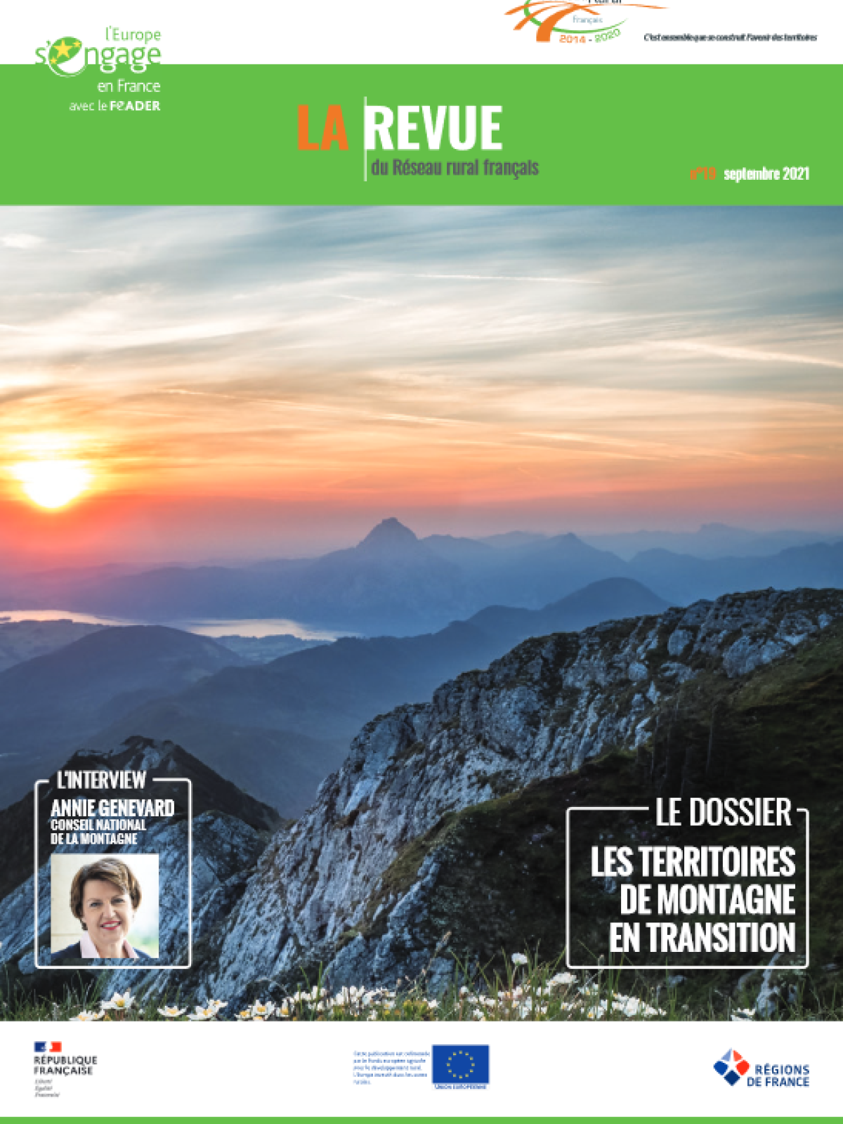 Revues La revue du réseau - septembre 2021 National Agriculture Environnement FEADER Réseau National Agricultures et Ruralités Réseaux régionaux Publié le 3 septembre 2021 Mis à jour le 3 octobre 2025 Au sommaire de ce numéro, • un dossier spécial : "Les territoires de montagne en transition" • également une interview d'Annie Genevard , Présidente de la commission permanente du Conseil national de la Montagne (CNM) depuis avril 2021 • retrouvez enfin nos rubriques habituelles avec les actualités consacrées au Partenariat Européen pour l’Innovation, aux Mobilisations collectives pour le développement rural, à LEADER ou encore aux Réseaux ruraux régionaux, ainsi que nos idées lectures pour la rentrée. • Bonne lecture ! L'interview Annie Genevard, présidente de la commission permanente du Conseil national de la montagne. Le dossier - les territoires de montagne en transition Face à de profondes transitions économiques, climatiques ou démographiques, les territoires de montagne doivent s'adapter. Éclairages d'experts et d'acteurs locaux sur les enjeux de préservation de leurs ressources naturelles, de leurs savoir-faire ou de leur agriculture. Actus LEADER Pays de Remiremont : l'héritage naturel et culturel comme atout de développement territorial France-Roumanie : un cycle de webinaires sur le développement rural Coopération LEADER : une nouvelle cellule d'appui technique et méthodologique pour les GAL Actus PEI AGROSYL : l'autonomie fourragère et le bien-être animal grâce au bois PRAIRIE SUD : quels fourrages privilégier face aux contraintes économiques et climatiques ? L'ENSEIGNEMENT AGRICOLE : acteur clé de la transition agro-écologique Initiatives de la mobilisation collective pour le développement rural (MCDR) L'ANIMATION DE RÉSEAUX À DISTANCE : quelles nouvelles pratiques pour les MCDR ? RENFORT : encourager les stratégies de gestion collective des forêts d'altitude AJITeR : pour un accueil et une installation durable des jeunes adultes dans les territoires de montagne Actus des réseaux régionaux RURAL INSPIRATION AWARDS : penser l'avenir de la ruralité NOUVELLE-AQUITAINE : le Réseau en action(s) GUADELOUPE : "avancer dans une relation de co-construction et de confiance avec le tissu rural" WEBCONFÉRENCES : le programme du 2nd semestre Document(s) lié(s) La revue du réseau - septembre 2021 PDF - 6 950.5 KB English version PDF - 6 914.3 KB À propos Auteur - Autrice Réseau rural national Découvrez d’autres projets sur la même thématique Mise en œuvre du PSN : quels enseignements après deux ans de programmation ? L’évaluation de la mise en œuvre du Plan Stratégique National (PSN) de la PAC 2023-2027 a été conduite pour le ministère en charge de l’agriculture (MAASA). Différents acteurs ont participé au pilotage de cette évaluation dans le cadre d’un groupe de... Études - 24 mars 2026 Évaluation ex-post du Programme Spécifique du Réseau Rural National (PSRRN) Lors de la programmation PAC 2014-2022, le Réseau Rural National (RRN) a joué un rôle central dans l... Études - 13 janvier 2026 Revue spéciale ANIMERA - décembre 2025 La revue "Agricultures et Ruralités" du mois de décembre 2025 se consacre aux projets financés dans ... Revues - 19 décembre 2025 Flyer Maraîchage Tout Herbe Pailler et fertiliser les cultures grâce aux fauches de prairies : le projet Maraîchage Tout Herbe Documents de réunions (compte rendus, diaporamas…) - 31 décembre 2025